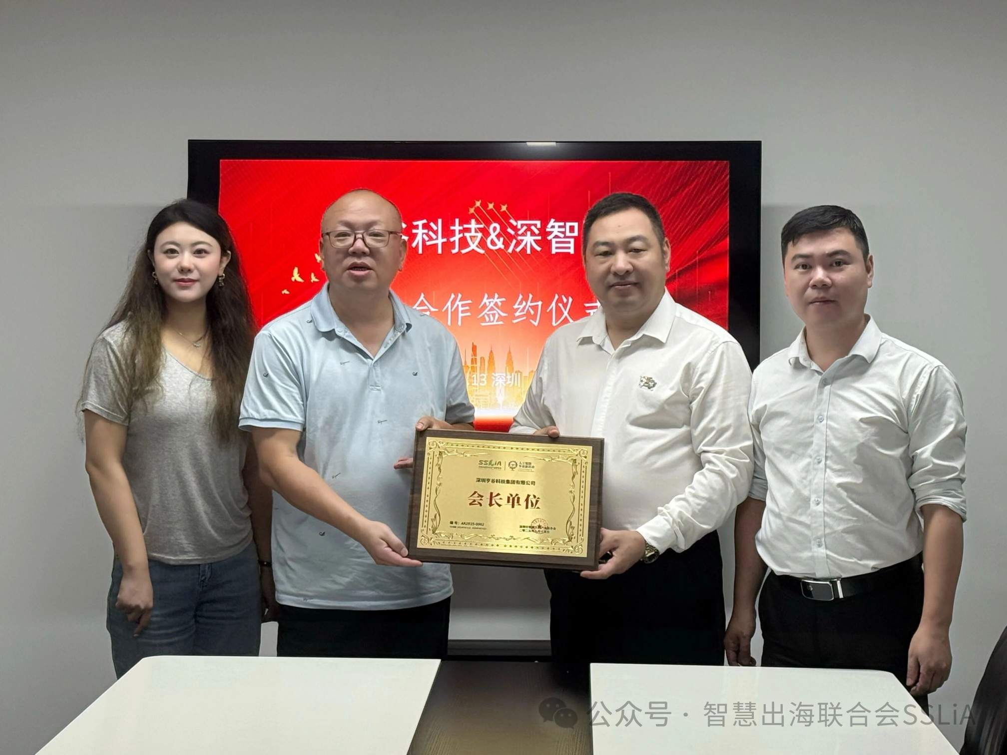 近日,深圳亨谷科技集团有限公司董事长、深圳市福建南靖商会会长、深圳市漳州商会秘书长陈建文,深圳市亨谷AI市场部负责人、亨谷AI总经理、工信部文化发展中心AIGC课程导师徐茂桐一行到访深圳市智慧生活产业联合会,并举行战略合作签约暨授牌仪式。